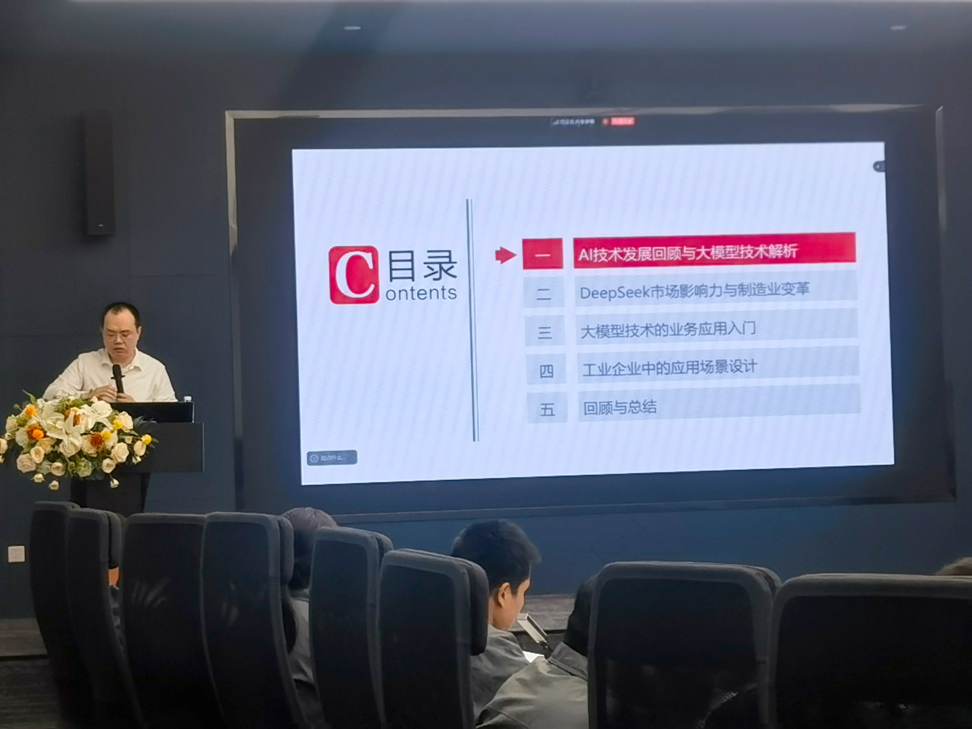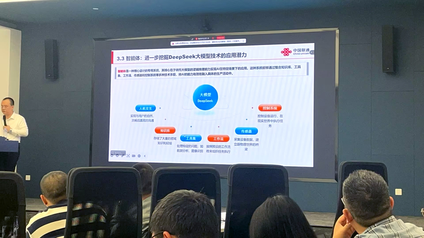 本次培训以《Ai大模型技术解析与工业企业应用实践——以DeepSeek为例》为主题,特邀中国联通(厦门)工业互联网研究院院长苏晓丹博士担任主讲人,为学员们带来一堂兼具理论深度与实践价值的技术分享课。